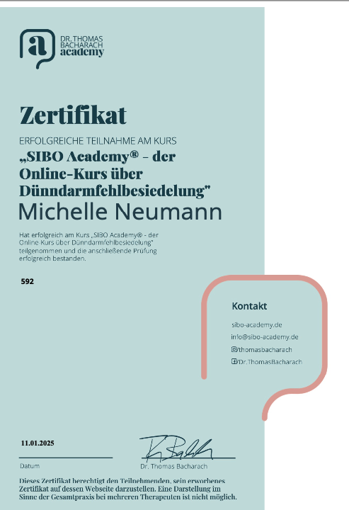 - zert. SIBO Expertin bei Dr. Thomas Bacharach